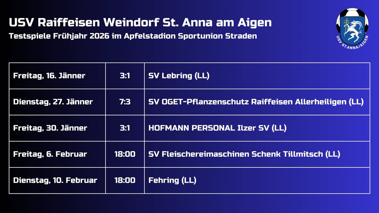 Kommende Woche gehen wir in die nächsten intensiven Trainingseinheiten und empfangen am Freitag den SV Tillmitsch (LL).